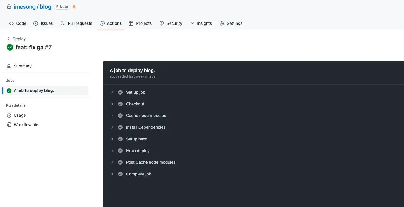 完成之后,编辑 blog ,push 之后查看 github action 执行情况